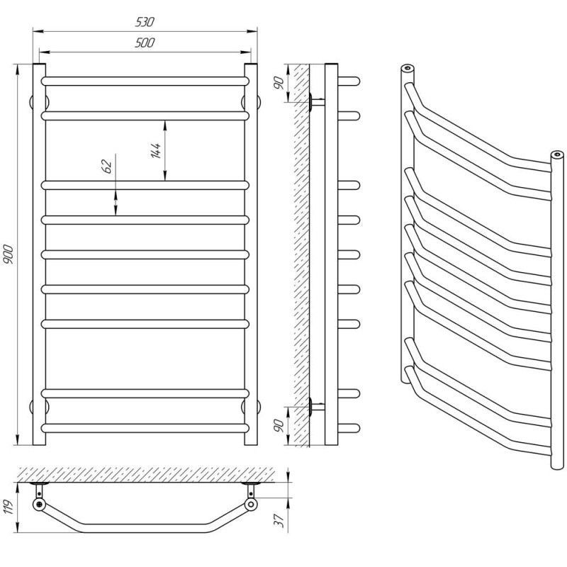 Полотенцесушитель водяной Laris Виктория П9 90x50 73207296